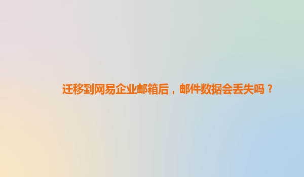 2024-10-19迁移到网易企业邮箱后,邮件数据会丢失吗? 随着互联网的不断发展,企业对于邮箱服务的需求也在不断增加。为了提高企业的邮件管理效率和安全性,很多企业开始考虑迁移到网易企业邮箱。然而,许多企业在迁移过程...