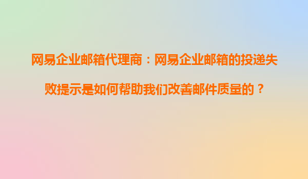 2025-10-19网易企业邮箱代理商:投递失败提示如何助力企业提升邮件质量 一、引言:邮件投递失败提示的价值 在数字化办公场景中,企业邮箱是内外沟通的核心工具,而邮件投递成功率...