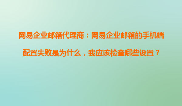 2025-10-19网易企业邮箱代理商:网易企业邮箱手机端配置失败原因及解决方案 一、网易企业邮箱的优势 作为国内领先的企业邮箱服务商,网易企业邮箱凭借以下优势赢得众多企业用户的信赖: 超高稳定性...