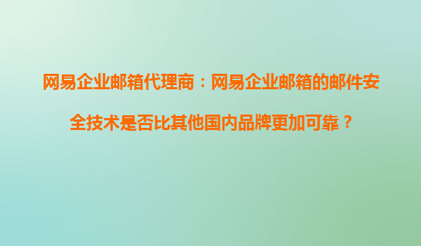 2025-10-19网易企业邮箱代理商:网易企业邮箱的邮件安全技术是否比其他国内品牌更加可靠? 在当今数字化时代,企业邮箱不仅是沟通的重要工具,更是企业数据和商业机密的核心载体。邮件安全技术直接关系到企业的信息安全和运营...