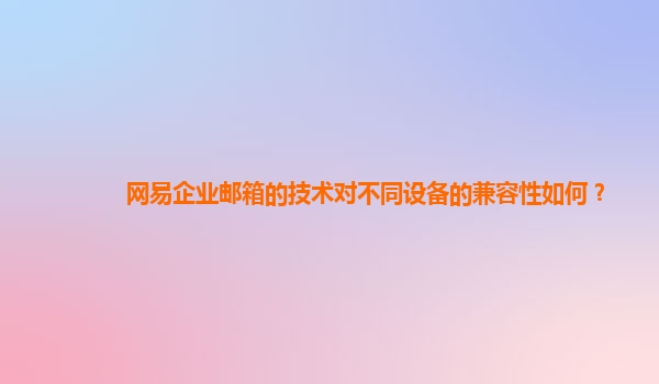 网易企业邮箱的技术对不同设备的兼容性如何? 随着企业信息化的推进,企业邮箱已经成为了公司日常沟通、管理的重要工具。而作为国内知名的企业邮箱服务商,网易企业邮箱凭借其卓越的技术和优质的服务,在企业市场中...