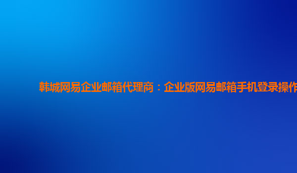 韩城网易企业邮箱代理商:企业版网易邮箱手机登录操作 在当前的信息化时代,快速准确地进行信息交流对于企业的运营至关重要。邮箱作为企业通讯的主要工具之一,更是现代企业日常运营中不可或缺的部分。而网易企业...