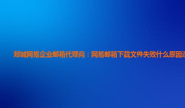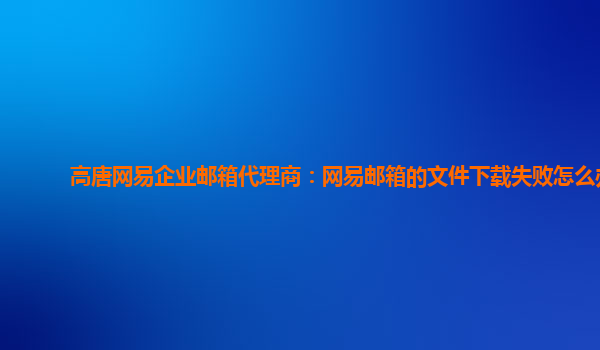 2024-06-13高唐网易企业邮箱代理商:网易邮箱的文件下载失败怎么办 有时候在使用网易企业邮箱时,我们经常遇到文件下载失败的情况。这种问题可能是因为各种原因而产生的,例如网络连接问题、服务器问题或者是文件问题等。那么...