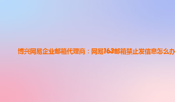 2024-06-13禹城网易企业邮箱代理商:网易邮箱禁止发信怎么解决 作为中国知名的互联网科技公司,网易始终致力于为广大用户提供优质的网络服务。其中,网易企业邮箱是一项专为企业打造的高效邮件处理工具,由禹城网易企业邮箱代...