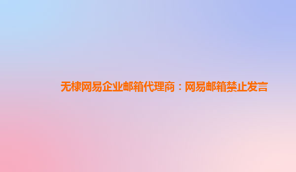 2024-06-13无棣网易企业邮箱代理商:网易邮箱禁止发言 在现今科技飞速发展的社会,邮件服务无疑是企业与客户、合作伙伴间进行信息交流的重要工具。而在众多邮箱服务商中,网易企业邮箱以其优辺之处,成为了许多企业的首选。无...