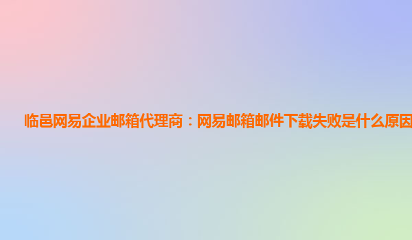 2024-06-13乐陵网易企业邮箱代理商:网易邮箱邮件下载失败是什么原因引起的 当我们使用网易企业邮箱服务时,有时候可能会遇到一些问题,例如邮件下载失败。对于这种情况,大家可能会感到困惑,不知道具体是...