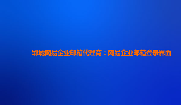 郓城网易企业邮箱代理商:网易企业邮箱登录界面 作为一个企业,邮件是进行日常沟通和报告的重要工具。但是,传统的电子邮箱可能无法满足企业对隐私和安全性的需求。这时,选择一个优质的企业邮箱服务商就显得尤...