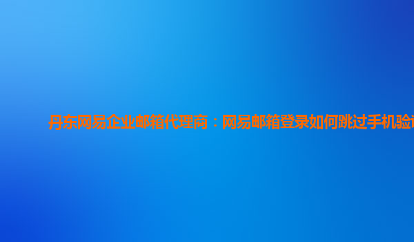 2024-06-13丹东网易企业邮箱代理商:网易邮箱登录如何跳过手机验证 作为一名来自丹东的网易企业邮箱代理商,我深刻了解到企业邮箱在日常工作中所起到的重要作用。近年来,越来越多的公司选择使用企业邮箱进行商务沟通,其中网...
