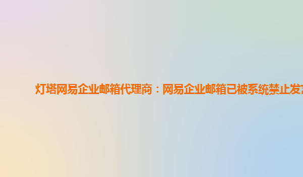 2024-06-13灯塔网易企业邮箱代理商:网易企业邮箱已被系统禁止发言 作为21世纪的现代化公司,沟通和联络无疑是日常必需的环节。随着科技的发展,企业的沟通方式也越来越多样化,其中,邮箱已经成为了我们不可或缺的工具之一。...
