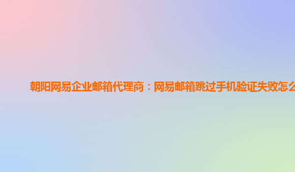 朝阳网易企业邮箱代理商:网易邮箱跳过手机验证失败怎么办 现在的网易邮箱,已经不仅仅是个人使用的通信工具,更多的是成为了企业之间交流、沟通的重要载体。由此产生的大量数据信息,为企业的发展提供了巨大的...