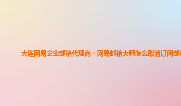 2024-06-13大连网易企业邮箱代理商:网易邮箱大师怎么取消订阅邮件 在现代社会中,电子邮件已经成为了各类企业交流合作、沟通信息的重要工具。其中,网易企业邮箱以其稳定的系统、高效的服务以及优秀的安全性获得了众多企业的...