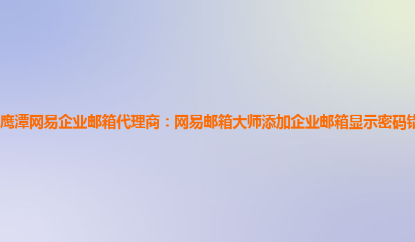 2024-06-13进贤网易企业邮箱代理商:网易邮箱大师添加企业邮箱显示密码错误怎么办 在当下这个信息化社会,电子邮件已经成为了工作生活中的必需品,而针对企业的电子邮件服务更是不容忽视的一个重要工具。网易企业邮箱代理商为...