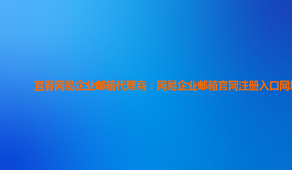 吉安网易企业邮箱代理商:网易企业邮箱官网入口登录 作为中国领先的互联网科技公司,网易始终致力于为企业提供优质的专业服务。其中,网易企业邮箱以其优秀的功能体系和稳定高效的服务质量,受到了大多数企业用户的...