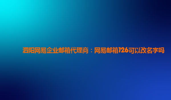 2024-06-13泗阳网易企业邮箱代理商:网易邮箱126可以改名字吗? 在我们日常的生活和工作中,邮箱已经成为一个重要的通讯工具。企业邮箱更是企业形象和沟通效率的体现。而网易企业邮箱一直以其稳定、安全、高效的特性深得用户喜...
