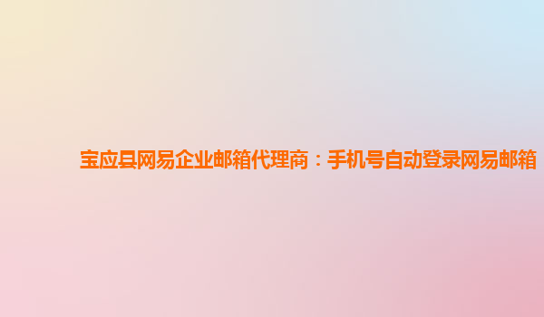 2024-06-13宝应县网易企业邮箱代理商:手机号自动登录网易邮箱 在当前的信息化社会中,企业邮箱已经成为企业内部通信的重要工具。而网易企业邮箱,凭借其稳定可靠的性能、丰富的功能和良好的用户体验,赢得了众多企业的青...
