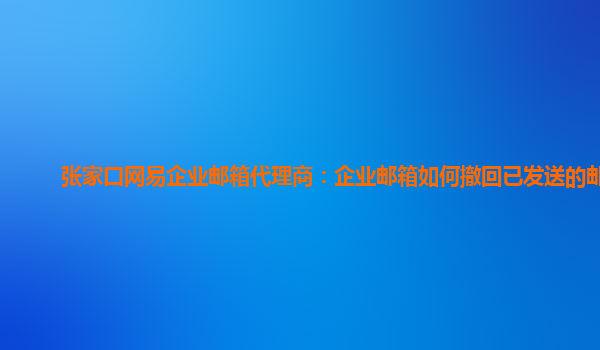 2024-06-13承德网易企业邮箱代理商:163邮箱如何撤回已发送的邮件 在日常工作中,我们会因为种种原因需要撤回已发送的邮件。可能是思维仓促下误发错,也可能是自己稍后才意识到邮件内容存在问题需要修改。这时,如何撤回已发送...