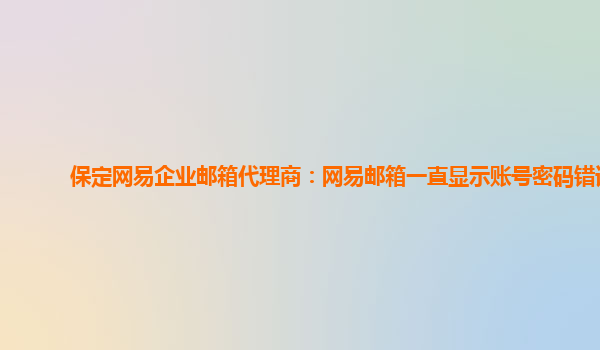 2024-06-13保定网易企业邮箱代理商:网易邮箱一直显示账号密码错误 作为保定地区的网易企业邮箱代理商,我们在这里为您解答网易邮箱出现账号密码错误的问题。同时也将为您介绍网易企业邮箱的优势,解释为什么在众多的企业邮箱...