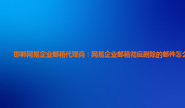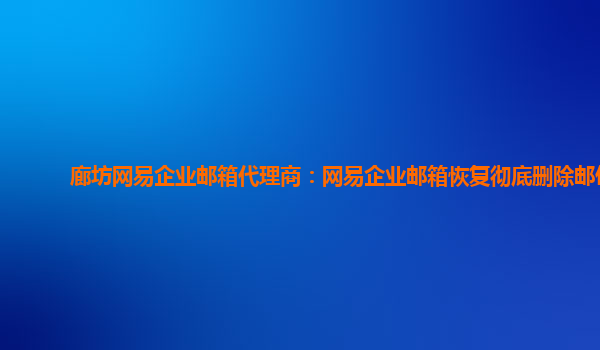 邢台网易企业邮箱代理商:网易企业邮箱恢复彻底删除账号 在现今这个充斥着信息技术的时代里,电子邮件作为最重要的在线通信工具之一,已经成为企业运营中不可或缺的一部分。尤其是网易企业邮箱,凭借其简洁、高效、...