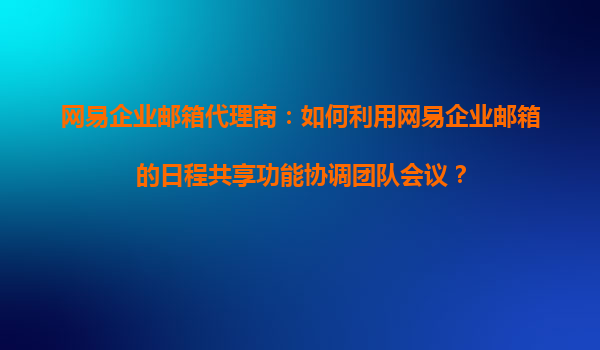 网易企业邮箱代理商:如何利用网易企业邮箱的日程共享功能协调团队会议? 一、引言 在快节奏的企业运营中,高效的团队协作是提升生产力的关键。而会议作为团队沟通的核心场景,其组织效率直接影响整体工作进度。网...