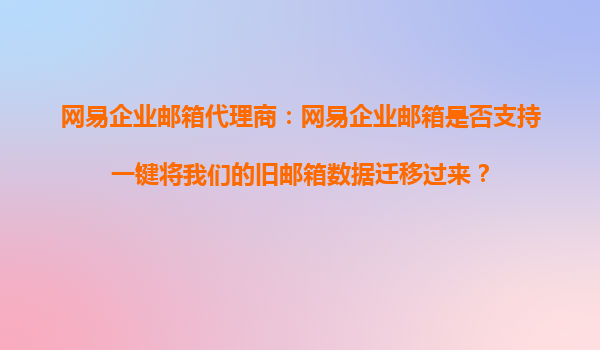 2025-10-16网易企业邮箱代理商:网易企业邮箱是否支持一键将我们的旧邮箱数据迁移过来? 一、网易企业邮箱数据迁移功能概述 作为国内领先的企业级邮箱服务提供商,网易企业邮箱充分考虑到了企业在更换邮箱系统时的数据迁移需...