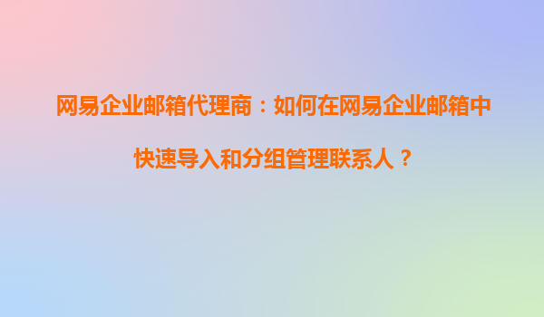 2025-10-16网易企业邮箱代理商:如何在网易企业邮箱中快速导入和分组管理联系人? 网易企业邮箱作为国内领先的企业级邮件服务提供商,一直以其稳定的性能、高效的协作工具和便捷的管理功能受到企业用户的青睐。作为网易企...