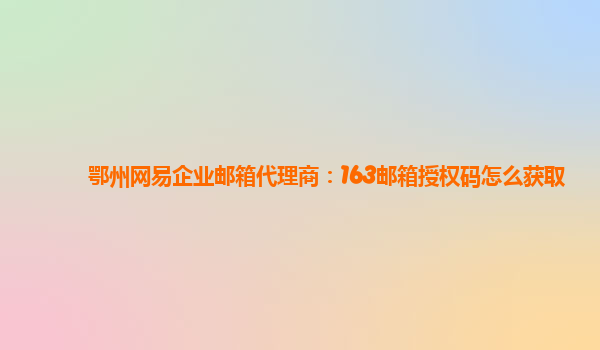 2024-06-13枣阳网易企业邮箱代理商:163邮箱授权码获取及优势介绍 介绍 网易企业邮箱是一款专业的企业邮箱服务,为企业提供稳定可靠的电子邮件服务。作为枣阳地区的网易企业邮箱代理商,我们为您提供163邮箱的授权码获取方法...