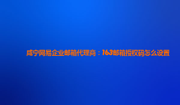 咸宁网易企业邮箱代理商:163邮箱授权码怎么设置 作为咸宁地区的网易企业邮箱代理商,我们经常收到用户询问关于163邮箱授权码设置的问题。下面我们来详细介绍一下授权码的具体设置方法。 1.登陆163企业邮箱账号 首...