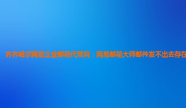 2024-06-12齐齐哈尔网易企业邮箱代理商:网易邮箱大师邮件发不出去存在发件箱里 问题描述: 最近有用户反映在使用网易邮箱大师时遇到一个问题,即发送的邮件无法成功发出,但却存在于发件箱中。 问题原因分析: 网易企业邮箱...