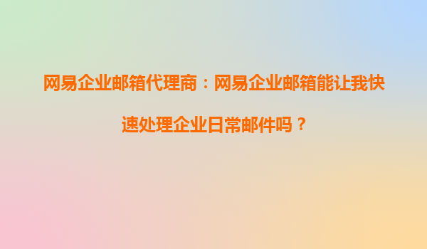 2025-10-15网易企业邮箱代理商:网易企业邮箱能让我快速处理企业日常邮件吗? 一、标题解析与核心需求 标题中的核心问题聚焦于“快速处理企业日常邮件”,这反映了企业对高效沟通工具的迫切需求。网易企业邮箱作为专...