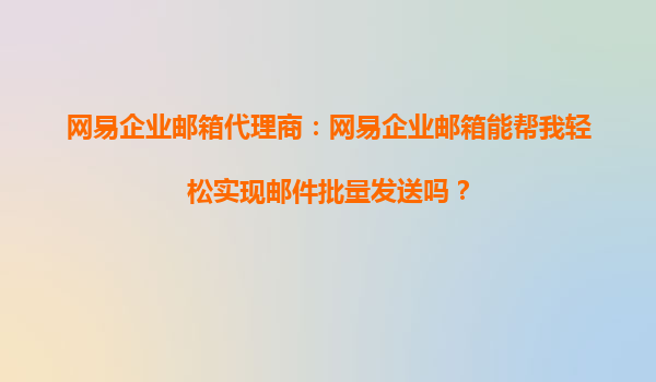 2025-10-15网易企业邮箱代理商:网易企业邮箱能帮我轻松实现邮件批量发送吗? 在当今快节奏的商业环境中,高效的沟通工具是企业成功的关键因素之一。邮件作为商务沟通的重要载体,其稳定性和功能性直接影响企业的运...