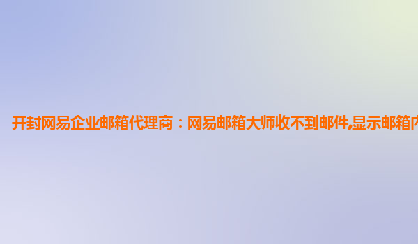 2024-06-12开封网易企业邮箱代理商:网易邮箱大师收不到邮件,显示邮箱内存不足 最近,我们公司使用了网易企业邮箱作为主要的邮件通信工具。和以往使用的邮箱相比,网易企业邮箱在使用中表现出了许多优势,让我们更加...
