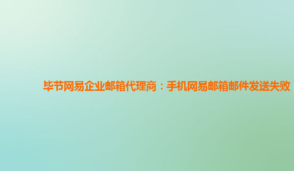 2024-06-12毕节网易企业邮箱代理商:手机网易邮箱邮件发送失败 在日常工作中,我们经常会使用邮箱进行沟通和交流。然而,有时候我们可能会遇到邮件发送失败的情况,这时就需要找到合适的解决办法来解决问题。 网易企业邮箱的...