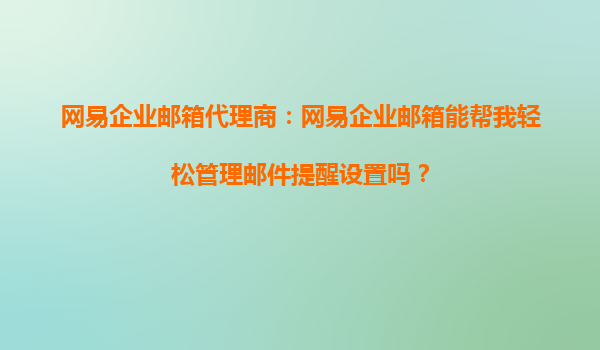 2025-10-15网易企业邮箱代理商:网易企业邮箱能帮我轻松管理邮件提醒设置吗? 引言 在现代企业管理中,高效的邮件沟通是企业运营的重要环节之一。邮件提醒设置作为邮件系统的核心功能之一,能够帮助员工及时处理重要...