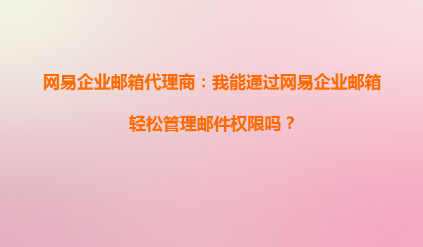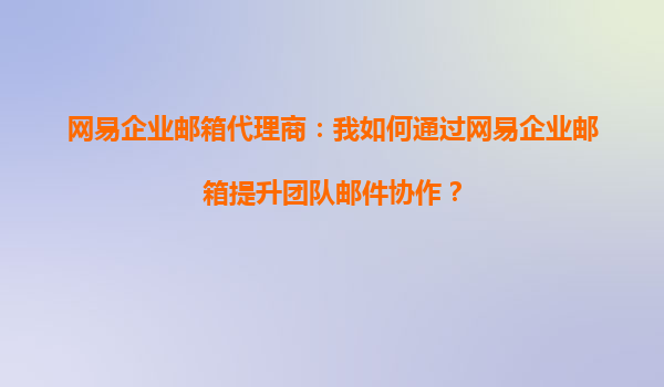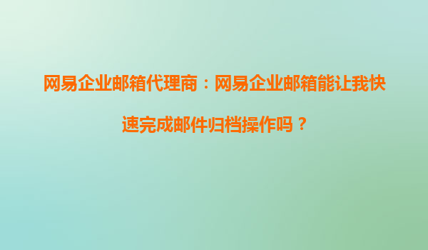 2025-10-15网易企业邮箱代理商:我能用网易企业邮箱轻松管理客户邮件吗? 引言 作为网易企业邮箱的代理商,你是否经常被客户问到:“网易企业邮箱能帮助我轻松管理客户邮...