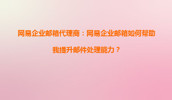 2025-10-15网易企业邮箱代理商:网易企业邮箱如何帮助我提升邮件处理能力? 一、企业高效沟通的基石:网易企业邮箱 在数字化办公时代,电子邮件作为企业内外沟通的核心工具,其稳定性和功能性直接影响工...