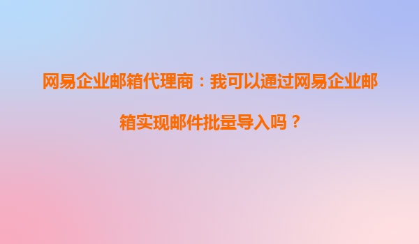 2025-10-15网易企业邮箱代理商:通过网易企业邮箱实现邮件批量导入的全面指南 在现代企业运营中,高效、安全的邮件系统是业务沟通的核心工具。网易企业邮箱凭借其稳定性和丰富的功能,成为众多企业的首选。而作为网...