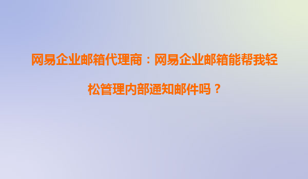 2025-10-15网易企业邮箱代理商:网易企业邮箱能帮我轻松管理内部通知邮件吗? 在现代企业管理中,高效的内部沟通是提升工作效率的关键。而邮件作为企业内部通知的重要工具,其管理效率直接影响着企业的运营流畅度。那么,网...