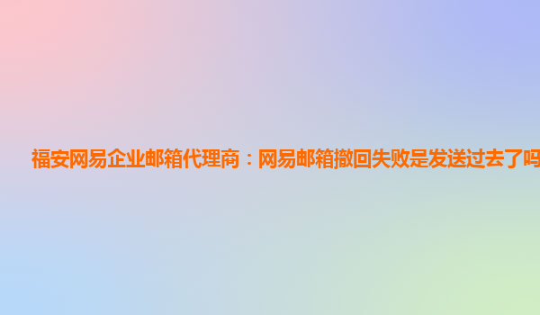 2024-06-12福安网易企业邮箱代理商:网易邮箱撤回失败是发送过去了吗怎么办 在日常工作中,我们常常会使用企业邮箱进行邮件通讯。而作为福安网易企业邮箱代理商,我们要了解如何处理一些常见问题,比如邮件撤回失败的情况。 ...