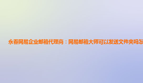 2024-06-12永春网易企业邮箱代理商:网易邮箱大师可以发送文件夹吗怎么发送 作为永春网易企业邮箱代理商,我们深知网易企业邮箱的一些优势,如高效的邮件收发、安全可靠的防病毒功能、强大的管理控制等。今天我们来谈谈一个常...