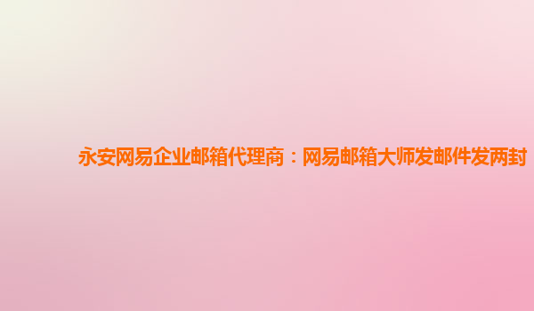 2024-06-12以永安网易企业邮箱代理商:网易邮箱大师发邮件发两封为主题的文章 作为永安网易企业邮箱代理商,我们深知网易企业邮箱的强大功能和优势。通过使用网易企业邮箱,我们能够更加高效地进行邮件沟通和管理工作,...