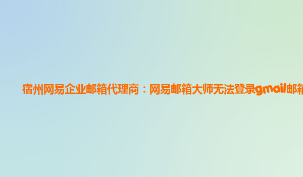 2024-06-12宿州网易企业邮箱代理商:网易邮箱大师无法登录gmail邮箱 近日有用户反馈,使用网易企业邮箱代理商服务的企业用户在尝试登录gmail邮箱时遇到了问题,提示无法登录。针对此情况,我们将从以下几个方面进行分析和解答...