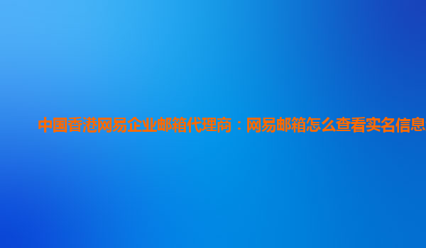 2024-06-12中国香港网易企业邮箱代理商:网易邮箱怎么查看实名信息查询 作为中国香港地区的网易企业邮箱代理商,我们了解很多用户关心如何查看实名信息查询。以下是一些简单的步骤,帮助您轻松查询。 网易企业邮箱优势 稳...