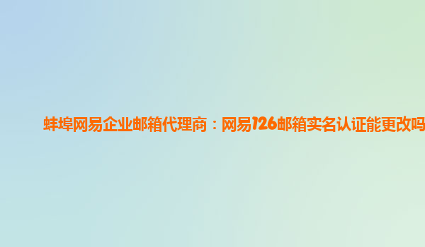 2024-06-12蚌埠网易企业邮箱代理商:网易126邮箱实名认证能更改吗 作为蚌埠地区的网易企业邮箱代理商,我们经常接到关于网易126邮箱实名认证是否能更改的问题。下面我们将为大家详细解答这个问题。 网易企业邮箱的优势 首先...