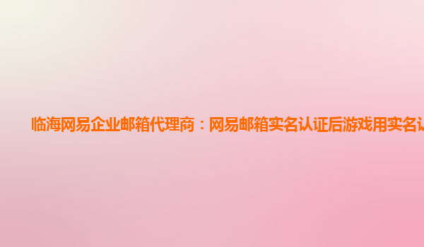2024-06-12苍南网易企业邮箱代理商:网易邮箱实名游戏就实名了吗 随着互联网的不断发展,企业在进行电子邮件沟通和管理的需求也越来越迫切。网易企业邮箱作为国内知名的企业邮箱服务商,深受各行各业企业的青睐。在选择网...