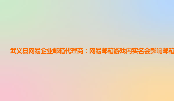 2024-06-12武义县网易企业邮箱代理商:网易邮箱游戏内实名会影响邮箱实名吗 使用网易企业邮箱的优势在于其稳定可靠的服务和丰富的功能,为企业提供了高效便捷的沟通工具。在使用网易企业邮箱时,很多人会担心在网易游戏内实名...
