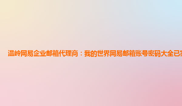 2024-06-12温岭网易企业邮箱代理商:我的世界网易邮箱账号密码大全已实名认证 随着互联网的快速发展,电子邮件已经成为我们日常工作中不可或缺的一部分。作为企业管理者,拥有一个稳定、安全的企业邮箱系统是非常重要的。而网...