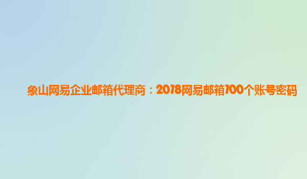 2024-06-12象山网易企业邮箱代理商:2018网易邮箱100个账号密码使用体验分享 一、便捷的企业邮箱管理 作为象山网易企业邮箱代理商,我们为客户提供了2018个网易邮箱账号,让企业轻松管理员工的电子邮件。通过网易企业邮箱,企...