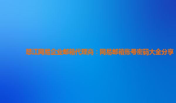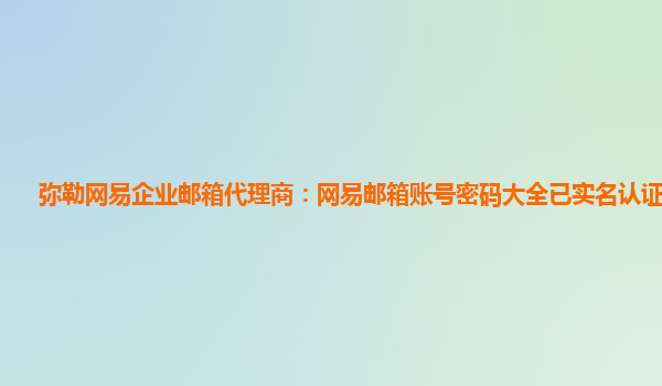 2024-06-12网易企业邮箱代理商:网易邮箱账号密码大全分享 作为专业的网易企业邮箱代理商,我们致力于分享网易邮箱账号密码大全,为企业用户提供更便捷、安全的邮箱服务。网易企业邮箱拥有诸多优势和好用之处,让我们一起...