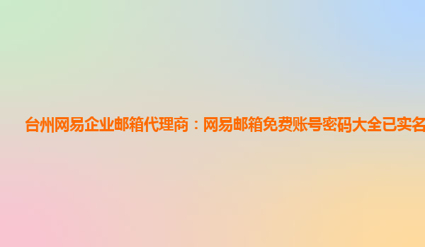 台州网易企业邮箱代理商:网易邮箱免费账号密码大全已实名163 网易企业邮箱优势 作为国内领先的企业邮箱服务提供商,网易企业邮箱拥有诸多优势: 安全稳定:采用SSL加密技术,确保邮件传...