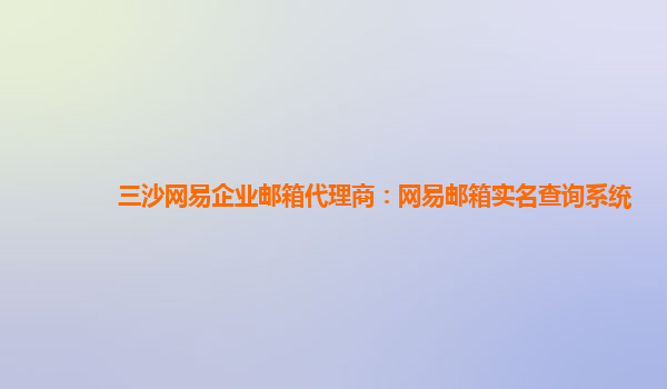 三沙网易企业邮箱代理商:网易邮箱实名查询系统 网易企业邮箱是一款功能强大、安全可靠的企业邮箱服务,为企业提供了高效的沟通协作平台。作为三沙网易企业邮箱代理商,我们将为您介绍网易邮箱的优势和好用之处。 ...